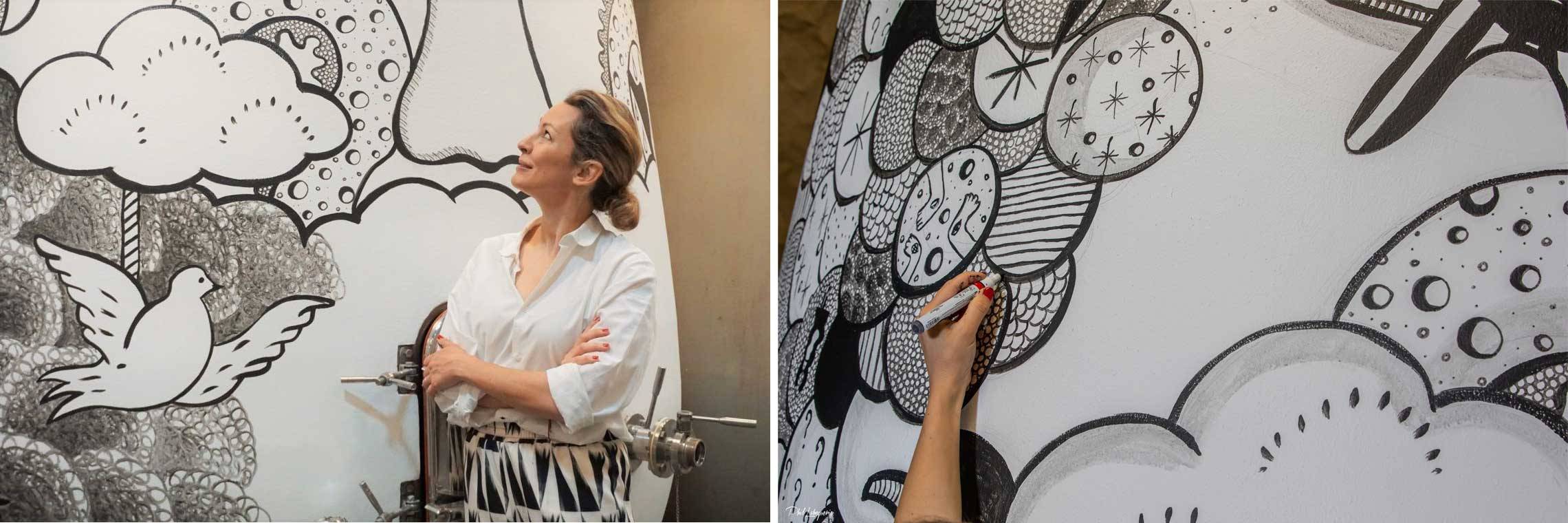 Initié depuis 2016 et après les réalisations des artistes Ara Starck, Sergio Mora, Beniloys et le Collectif La Douceur, c’est au tour de l’artiste française Gwendoline Finaz de Villaine de s’associer avec le Château et de créer une oeuvre unique pour la cuve du millésime 2019.