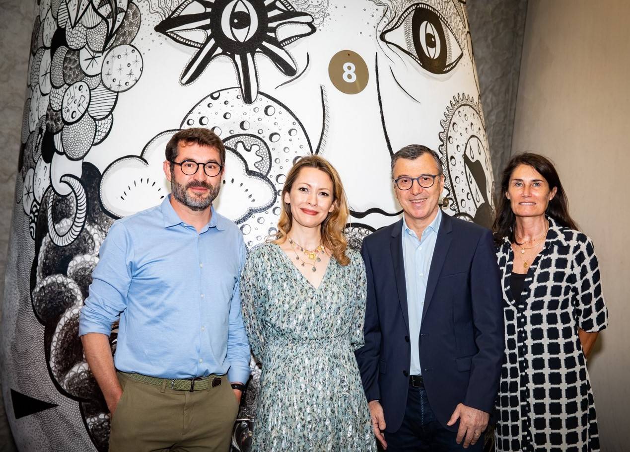 Le 8 juillet dernier, la 5e cuve a été dévoilée en présence de Diane et Patrice Pichet, Guillaume Pouthier et Gwendoline Finaz de Villaine. « Equilibre Divin » représente le millésime 2019 et a été réalisé par Gwendoline Finaz de Villaine.