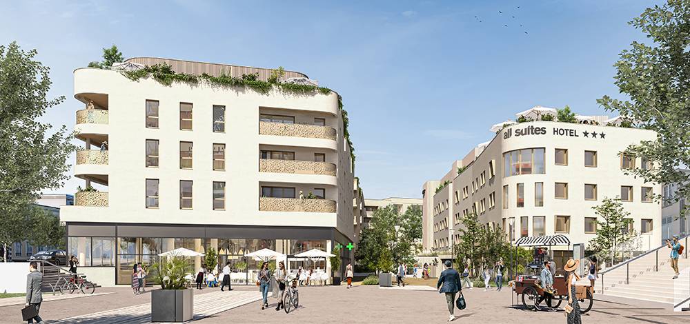 - Un hôtel 3* de 99 chambres, exploité sous la marque All Suites Hôtel, avec un bar-restaurant prolongé d’un rooftop de 191 m², accessible au public