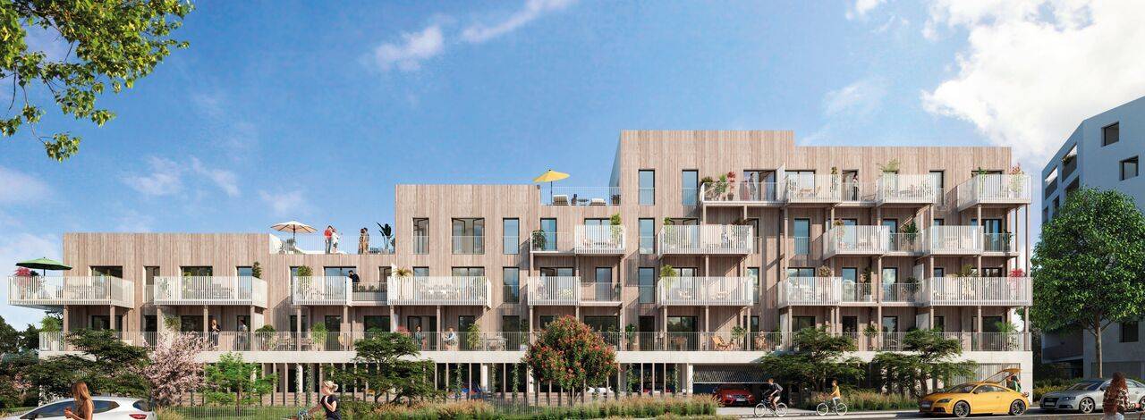 - 63 logements, du T2 au T4, répartis sur 2 bâtiments faisant la part belle au bois